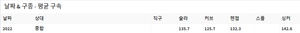 지난 시즌에 비해서 슬라이더와 커브 구속이 조금씩 올랐네요