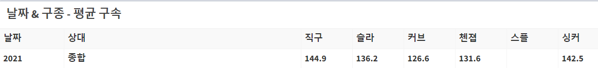 (올시즌 직구를 안던진건지...스탯티즈 모바일에서는 투심으로 기록되고 있네요)
